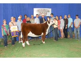 The sire of the most popular Hereford heifer here in Iowa this summer shown by the Curtin family. As of this writing Premonition is injured and never bred a cow this summer and may never again and its very likely he'll never freeze any more semen either. Whats out there for semen is probably it. We've used him here on a very limited basis as most of our cows are carrying some influence of BH Kutter 3011 and I'm not a big fan of intentionally line breeding so the heifer of Curtin's is an example of what he's capable of doing when used on a limited basis. An added bonus if there's a better haired Hereford bull out there