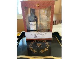 Dewars Scotch gift set with two etched Double Old Fashion tumblers
