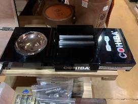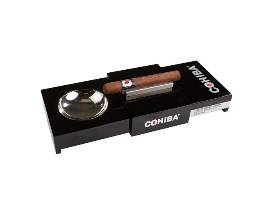 Cohiba Desktop Ashtray/Humidor; 5-7 capacity humidor with internal locking hinges attached to a small ashtray, with a sliding cigar bed to both cover the ashtray when not in use, or slide over and hold a cigar during your herf. The black piano-finish lacquer is striking and prestigious, and will provide an excellent accent to any room.