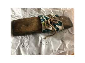 The Ultimate Hostess gift - a vintage cheese board, hand painted kitchen towel, and Mountain Rain candle.