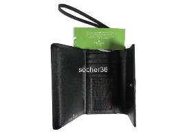Color: Black - Description: Snap closure; tri-fold wristlet; detachable strap of approx. 6.5"