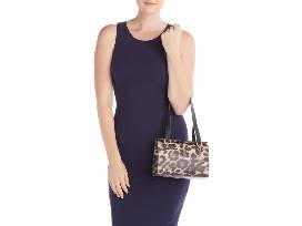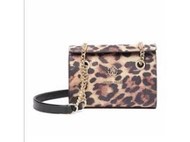 Set off your classic styling with this Italian-made leather bag suspended by gold-tone chain-link shoulder straps. - Dual chain-link shoulder straps - Foldover flap with magnetic closure - Exterior features hardware logo accent - Interior features 2 compartments, wall slip pocket - Approx. 7.5" H x 8.5" W x 3" D - Approx. 18" strap drop - Made in Italy: Brown Cheetah color.