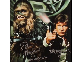 Autographed by: Harrison Ford and Peter Mayhew (May 19, 1944 - April 30, 2019)