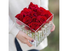 Take this amazing 25 rose arrangement in a beautiful acrylic box home TODAY!