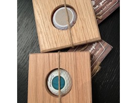 0This Racer Leather Headcover is an updated design replicating Stitch Golf's very first leather headcover. The coasters are handmade using reclaimed golf equipment.