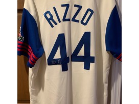 Cooperstown Collection throwback Chicago Cubs jersey signed by Anthony Rizzo! The goal of donor Scoreboard Charities is to win the game against cancer by raising funds for cancer research and services for children with cancer. As a cancer-survivor, Anthony Rizzo was happy to sign several jerseys and other items for Scoreboard Charities.