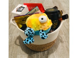 Fido will thank you when you come home with this basket of doggie treats and toys from Treat Planet.