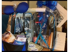 $125 - Kentucky Department of Tourism items (2 Travel KY koozies, 2 Travel KY bags, Travel KY neck pillow with bag, Travel KY umbrella, Travel KY Tervis tumbler, Travel KY ceramic mug, Travel KY xl t shirt, Travel KY travel log, Kentucky Bourbon cookbook, piece of Tate Knob Pottery by Gary Cates, authenticated 2019 Kentucky Derby Poster by Allie Viney, mint julep candle in silver julep cup, and Ale 8 - regular and cherry)