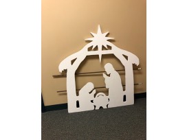 Let this manger scene be the showcase of your yard this Christmas! It has been cut from wood and mounted on iron rods. This piece measures approximately 4' x 3.5'.