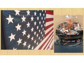 Along with your new flag, you will have BBQ fixins from Mission BBQ, who knows The American Way.. Your new tin tub (a perfect drink holder) comes with 4 Fill 'Er Up BBQ bottles; 4 specialty sodas; 2 drink bottles; and a gift card for their BBQ!