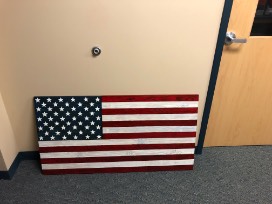 You will have something unique to display for upcoming patriotic holidays or for everyday decor. This burnt wood, full color American flag measures 26" x 49.5" and has been handmade by Bryan & Emily Toby of Toby Services.