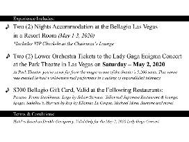 - Two (2) Nights Accommodation at the Bellagio Las Vegas in a Resort Room (May 1-3, 2020)