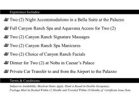 - Two (2) Night Accommodations in a Bella Suite at the Palazzo