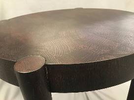 The table is made of oxidized oak in an end grain butcher block style.