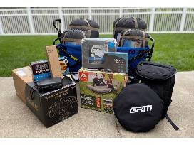 The Winner of the Plinko raffle will be fully equipped to survive the Great outdoors with their closest friends/family. This lot includes a ten (10) person straight wall cabin tent, Queen Air Mattress and sheets, two (2) adult sleeping bags, two (2) kids sleeping bags, six (6) roasting sticks with a Hershey's S'mores Kit as well as heated socks, portable cornhole game, Survival Gear kit, hiking cooler backpack, and a portable storage camping table all easily packed up in a collapsible wagon!