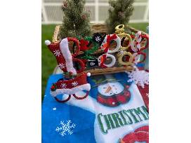 Decorate for the holidays with two (2) decorative snow capped pine trees along with an adorable St. Louis Cardinals snowman, one (1) snowflake ornament, variety of fun novelty glasses, and two (2) Christmas garden flags with stand.