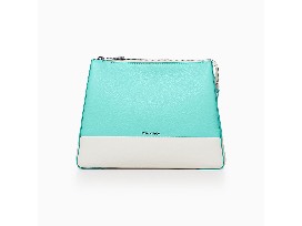 1High-quality Italian leather and T-Shaped accents define Tiffany leather designs. This two-tone case boasts playful proportions and a roomy interior.