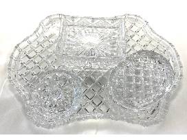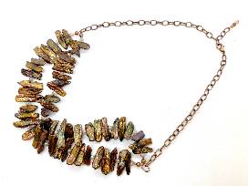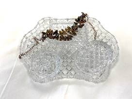Beautiful copper color baroque pearl necklace by local jewelry artist Ann Hale, and a four piece lead crystal dresser set.