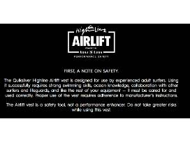 1The Quiksilver Highline Airlift vest is designed for use by experienced adult surfers. Using it successfully requires strong swimming skills, ocean knowledge, collaboration with other surfers and lifeguards, and like the rest of your equipment - it must be cared for and used correctly. Proper use of the vest requires adherence to manufacturer's instructions.