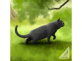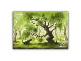Whimsical cat art ,"Friendly Forest", 8' x 17" Giclee canvas by Chaos in Color