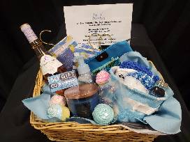 Also includes: A tiny blue tote to hold all your items, a beautiful beaded coin purse, 3 lovely lemon sachets, a hand painted blue beaded bracelet, and Bath & Body Works crisp air hand soaps.