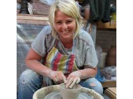 At her studio in Muskego, Wisconsin, she creates original functional and decorative ceramic works. Her pottery is made by hand on the wheel or slab built one at a time using durable white stoneware. Each piece is a one-of-a-kind with a rustic, yet still contemporary look which is achieved through modern glaze styles and colors, and multiple glaze techniques. She draws her inspiration from all things, historical art, beautiful fabrics, culinary arts, decorating trends, nature...you name it.