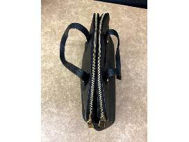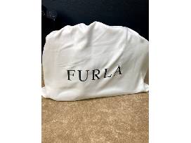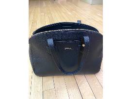 This luxurious black Furla Italian handbag measures 17" wide, 9.5" tall, and 5" deep. It has two zippered compartments and a center storage section. Also comes with dust bag.
