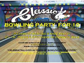 Enjoy three games of bowling, shoe rental, pizza and domestic beer at Classic Lanes in Greenfield for you and nine friends!