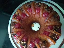- carrot cake with walnuts, coconut, pineapple, and raisins.