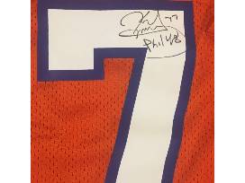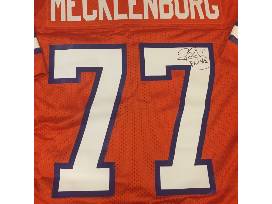 Signed #77 ring of fame Bronco, Karl Mecklenburg Jersy, Framed in Shadow Box