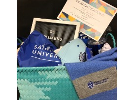 Certificate for one-1818 Advanced College Credit course through SLU valued at $195-260. In addition, all the SLU BLUE SWAG you could want.