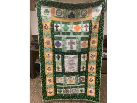 If you're even a little bit Irish, you NEED this quilt! This quilt was made with love by an R-K alumna and features clovers, Irish blessings and more. This beautiful quilt will look perfect in your living room or draped across your bed.