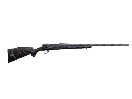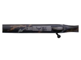 6.5-300 Wby. Mag. The Vanguard MeatEater Edition is the culmination of in-field experience, trends, and MeatEater's personal touches rolled into a collaboration between two top brands in the outdoor industry. Full Tungsten Cerakote finish on barreled action to prevent corrosion while accenting the spiral fluted #2 contour barrel. Lightweight and effective, the Vanguard MeatEater Edition features a unique color pattern that highlights the current trends of gray and brown accents on a black stock base. The black Cerakote fluted bolt matches the MeatEater logo located on the floorplate. The 1/2x28tpi threaded barrel with included seamless thread protector gives options for future Accubrake ST or suppressor installation. Weight: 7.15