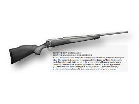 Weatherby Rifle: Barrel length is 26" for magnum chamberings & 24" for non-magnum and 240 Wby Mag. "Neither rain nor snow, nor sleet nor dark of night shall stay the Vanguard Weatherguard from the swift completion of its appointed rounds." As the name implies, the rifle is fully guarded against weather - so take the Weatherguard into the nastiest environments without a single worry about how it will perform. The Monte Carlo stock is made of ultra-tough Griptonite and all the metalwork has maximum protection with a great-looking Cerakote finish. Now go deliver some heat.