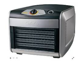 - Cabela's 6-Tray Heavy-Duty Dehydrator: The dehydrator's powerful, rear-mounted, 800-watt heater and fan force hot air horizontally across each individual tray towards the core to ensure even, consistent drying - eliminating the need to rotate trays during the cooking process. High capacity design offers 1,022 square inches of cooking space over 6 trays. The adjustable thermostat delivers precise dehydration temperatures between 80°-160°F. 20.5"Lx14.4"Wx11.8"H. Weight: 14.25 lbs