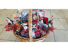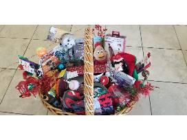 The ultimate basket for the pet your home. Encased in a handmade bed sits an abundance of toys for both cat and dog. Cat stocking., balls for both cats and dogs. Dishes for both cat and dogs, nail trimmer, book about dogs, K9 Katelynn Training certificate for 1 hour training for dog. Treats and so much more!!!