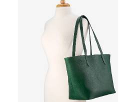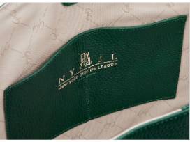 Represent the New York Junior League in style with this beautiful GiGi New York NYJL Tote! The emerald green, rich full grain leather "Teddie Tote" is a perfect, take-everywhere bag. Its lightweight feel, generous interior and luxurious soft handle make it chic yet extremely practical. Additional features include a large interior zip pocket, two interior slip pockets, a center interior zip divider pocket, protective metal feet and an 11" drop handle. The tote measures 17" W x 11" H x 6" D. Last but not least, the NYJL logo is printed in gold on the inside pocket.