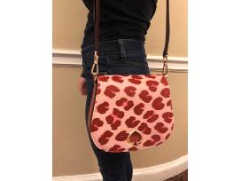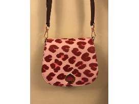 Don't blend in with the crowd when you could stand out with this Kate Spade lovely pink leopard "Suzy" saddle bag! Taking inspiration from Western style, the "Suzy' saddle bag from Kate Spade is fashioned from printed calf hair for a soft-touch finish. Sporting a pink leopard colorway, the bag has matching gold-tone hardware as seen trimming the spade grommet, along the internal zip pocket and where the detachable shoulder strap clips on using a lobster claw. Lined with faux micro suede, the interior compartment and extra slip pocket can be accessed under the flap that fastens with a magnetic snap. Dimensions: H: 23cm x W: 19cm x D: 5cm. Strap Drop: 55cm. No returns or exchanges.