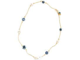 Take home a beautiful Chinoiserie Ocean Pearl Necklace! Inspired by the rugged charm of New England, designer Kiel James Patrick takes pride in creating timeless American-made fashion and accessories. Through vibrant, idyllic lifestyle imagery, the Kiel James Patrick brand awakens memories of carefree days by the coast wearing sea-shrunken rope bracelets, crisp fall nights around a bonfire layered in plaid shirts and sweaters, celebrating holiday traditions in bowties and pearls, and seaside jaunts in boat shoes on the first warm day of spring. This necklace embodies that vision and it is stunning! American-made manufacturing is the heart and soul of Kiel James Patrick, all jewelry items are handcrafted in the USA. No returns or exchanges.