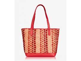 This Baja tote by Gigi New York is the perfect size for all your essentials! It's lightweight and easy to carry, making it a great go-to for weekend getaways. This tote comes in a red multi pom pom design with poppy red leather trim and has a magnetic top closure. No returns or exchanges. Pom Pom is Raffia with Pebble Leather. Bag has a magnetic top closure, interior zip pocket, and handles with 10" drop. Size: 17" W x 12" H x 6 1/2" D