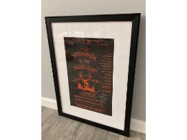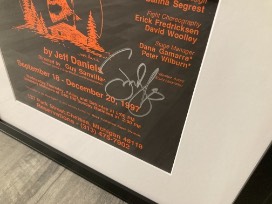 This framed poster, signed by Jeff Daniels, is from Jeff Daniels' original 1997 production of "Escanaba in da Moonlight," which premiered at The Purple Rose Theatre in Chelsea, Michigan. This is the perfect collector's item for those who are fans of Jeff Daniels and loved his smash hit theatrical comedy about buck hunting in the Upper Peninsula!