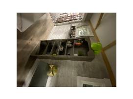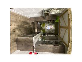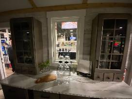 MANS will deliver within an hour or 60-mile radius of Ann Arbor. Shed measures approximately 16.5 feet x 6.5 feet. Cabinets, drapes, and cushions are included but knickknacks are not.