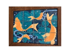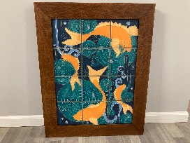 Enjoy this beautifully distinctive piece of artwork from the famed Motawi Tileworks in Ann Arbor. The company was founded in 1992 by Nawal Motawi, a University of Michigan art school graduate who started making tiles in her garage and selling them at the Ann Arbor Farmers Market. She now makes tiles in a 12,000 square foot facility and sells them in over 300 stores across the country. The company is passionate about making great tile while spreading positivity and making the world a better place by making beautiful things. Item is 23.5x30 inches in size. Shipping not available, item must be picked up or can be delivered within 60 miles of Ann Arbor.