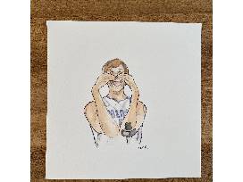 This is a 6" x 6" water color original of Mavericks center Boban Marjanovic, painted by ESPN's Mina Kimes. The image comes from Marjanovic's post game interview after Dallas played the Clippers during the 2020 NBA playoffs - a delightful memory for any Boban, Mavs, or NBA fan.