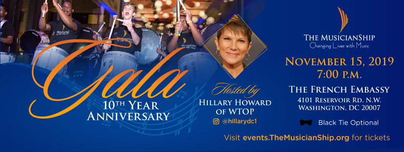 Join The MusicianShip and music-loving professionals from around the D.C. Metropolitan area at our 10 Year Anniversary Gala to celebrate a spectacular year! Hosted by The French Embassy, the night promises to deliver a uniquely sophisticated end-of-the-year celebration! Featuring dinner & dessert presentations by Les Cafe Descartés, wine & open bar service, live music, a silent auction & instrument petting zoo!