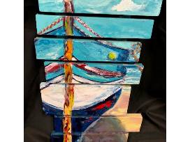 Docked at Beach 3 9x13 Acrylic Painting on Wood