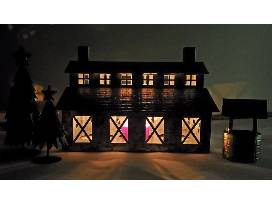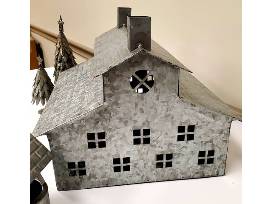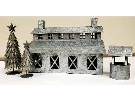 Make your holiday a little rustic by adding this charming barn set from Pottery Barn. All items are made from galvanized metal. Add flameless candles or votives to the barn and well to create a cozy feel.