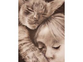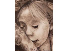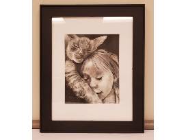 Appreciate this portrait of two endearing subjects, a girl and her cat, hand drawn using charcoal. Bring the warmth of the human-animal bond into your home.