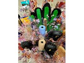 "These Boots Were Made for Walking" decorative vase with accessories. This beautiful handmade display celebrates our favorite four-legged friends with: