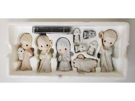 This 9 piece porcelain bisque nativity set comes with cassette tape (still sealed in package) of Sam Butcher, the creator of Precious Moments, telling the story of Christmas.